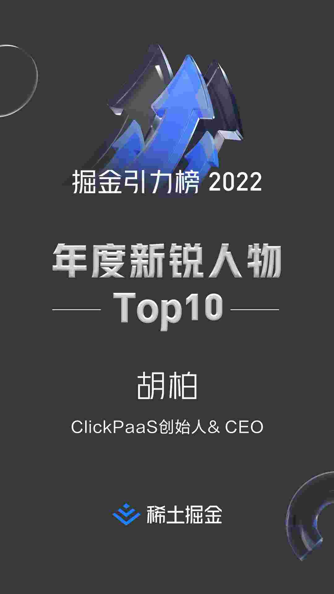 2022年1月6日,,,稀土掘金社区第一届「掘金未来大会」成功举办,,,会上发布了“2022 稀土掘金引力榜 年度新锐人物”榜单,,上海爱湃斯科技有限公司(简称GOPAY钱包)创始人及CEO胡柏实力入选年度新锐人物TOP 10。。。。