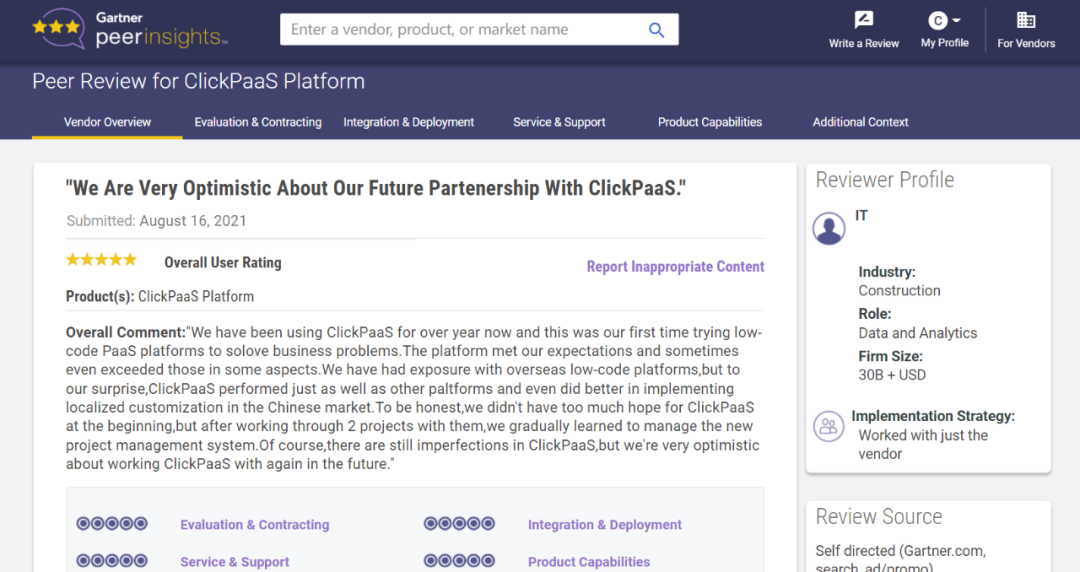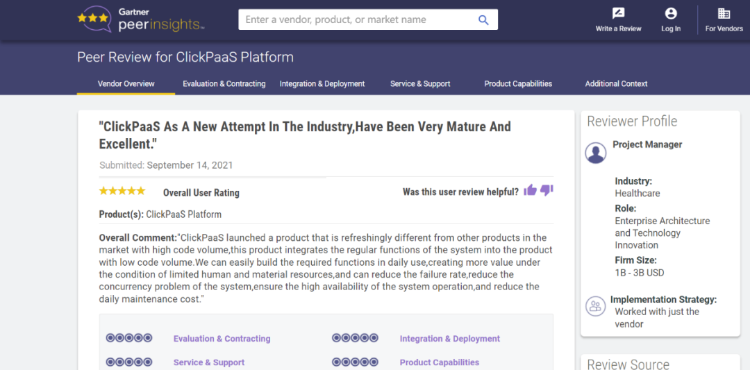 Tips:::【Peer Insights】——用户对企业IT产品和服务发布真实评价的平台。。。。目前已有355个市场,,,255,000条经过验证的评价。。。。每一条评价Gartner会针对参评企业营收规模及参评人员信息做验证、、、评价内容做多维核实。。