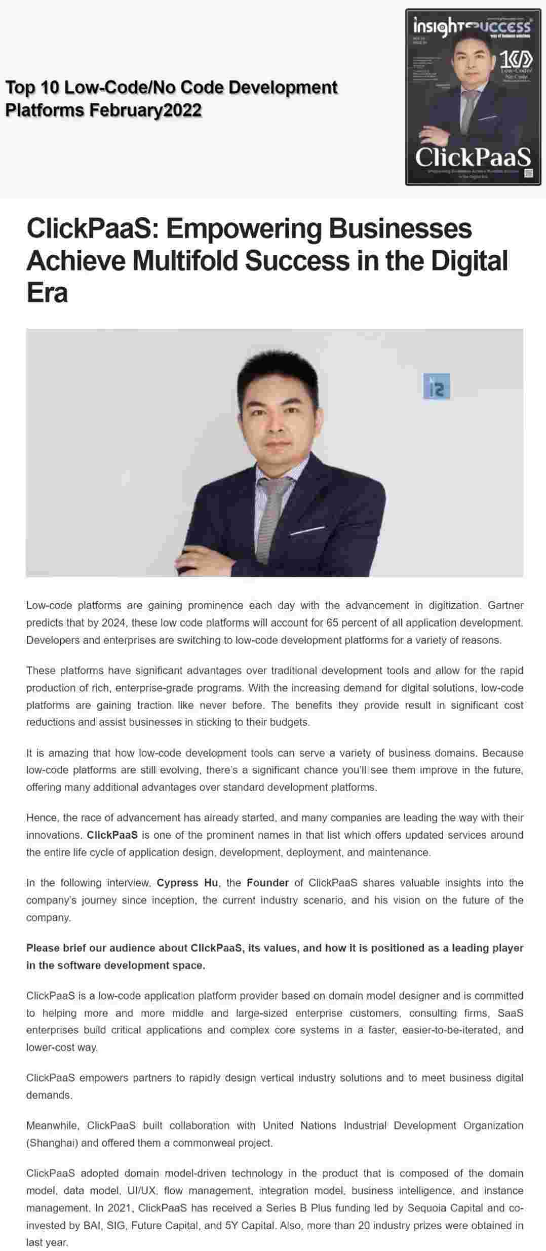2022年年初,,,,GOPAY钱包入选外媒Insights Success低代码/无代码开发平台 Top10,,,创始人、、、CEO胡柏受邀接受专访并荣登封面人物,,,,他与Insights Success的读者分享了GOPAY钱包成立的初心、、、发展历程、、、当前的行业发展趋势以及他对公司未来的展望。。。